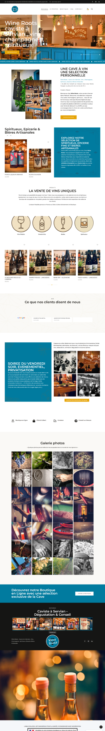 Création d’un site e-commerce complet sous WordPress avec WooCommerce, conçu pour WineRoots, une boutique en ligne dédiée à la vente de vins et spiritueux.