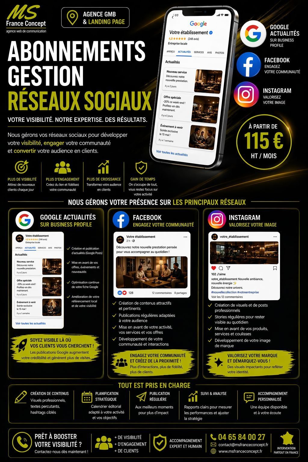 Visuels professionnels, textes percutants, hashtags ciblés